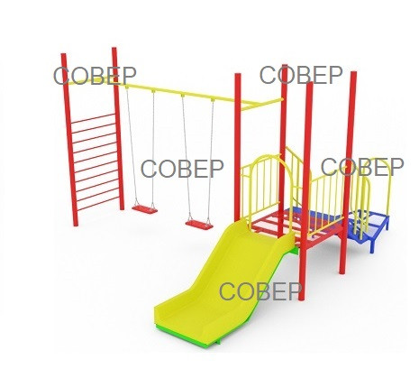 МАТЕРИАЛЫ: Сварная металлическая конструкция, скат - пластиковый (h-0,8м), качели на гибких подвесах (цепь) со спинкой,